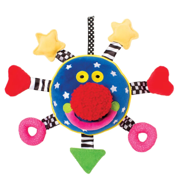 The Baby Whoozit by Manhattan Toy is the perfect companion for your baby's playtime, and a classic, award winning stroller and car seat toy. Featuring a friendly face, engaging high contrast fabrics, and hidden self-discovery mirror, the Baby Whoozit is sure to engage and delight your little one. With rattles, squeakers, and crinkle paper, this toy will captivate your baby's curiosity and stimulate their senses. Recommended for children 0+ months old.