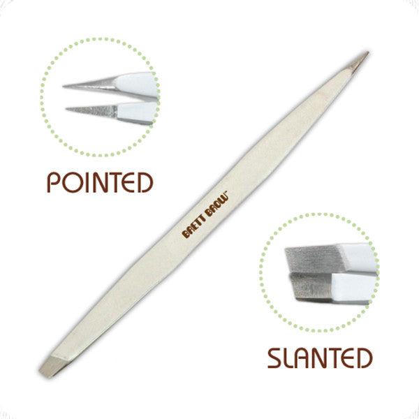 You won't ever reach for another set of tweezers in your kit once you get your hands on a pair of Brett Brow Tweezers! Dual-ended to make shaping your brows quick and precise, Brett designed these pluckers with a slanted side for easier to grab hairs and a pointed side for the hard to grasp, just-growing-in nubs. Made with 100% stainless steel and a white, super-grip coating. Shape your brows with the pro's secret weapon!