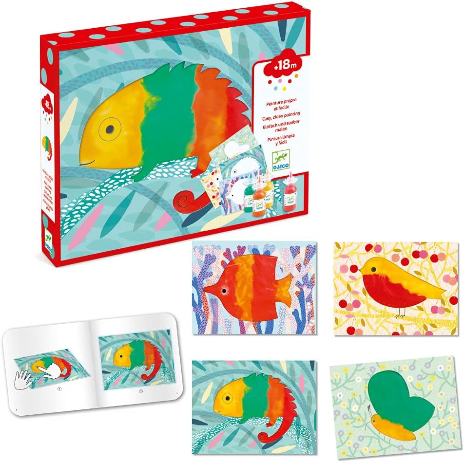Contains 4 paint bottles and 4, 8 x 11 inch wash and reuse picture cards, create a beautiful fish, iguana, butterfly and bird, easy water clean up. Create, wash, and create again!