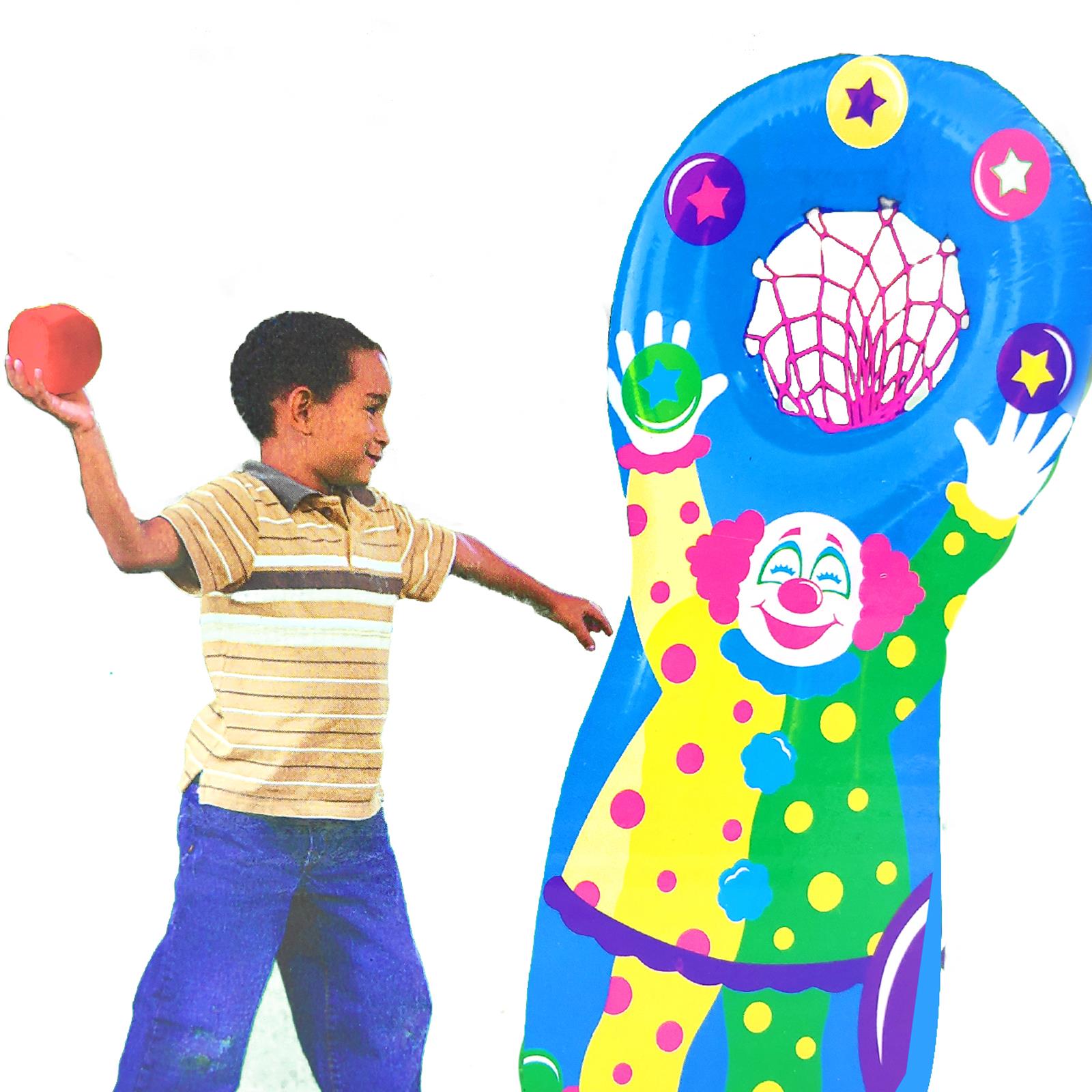 Keep kids entertained at the party with a fun Inflatable Clown Ball Toss Game! First, fill the base of the plastic clown net with water so it doesn't move while playing. Next, blow up the inflatable hoop. Have players stand back and take turns trying to throw the ball into the net whoever makes it in first wins. Use this inflatable ball toss game as a fun and safe party activity at a birthday, carnival, or circus party!