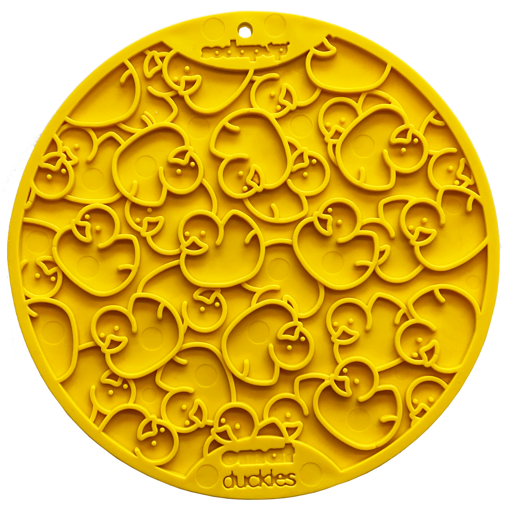 Spread your pets favourite food or treats into the surface of the eMat and stick it on the side of the tub, giving your dog an enrichment distraction while taking a bath! The eMat features suction cups on the back making it ideal for sticking it to the tub, or the refrigerator, or to smooth tile floors.